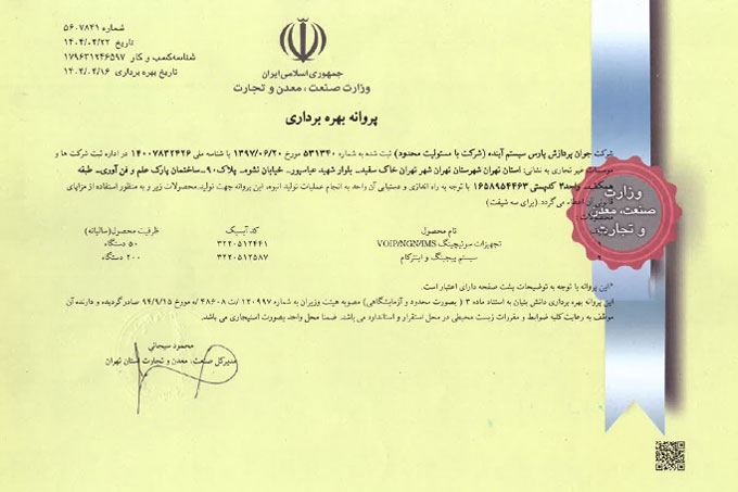 دیافت مجوز فعالیت از وزارت محترم صنعت، معدن و تجارت بعنوان اولین و تنها شرکت دانش بنیان پینیگ در کشور.